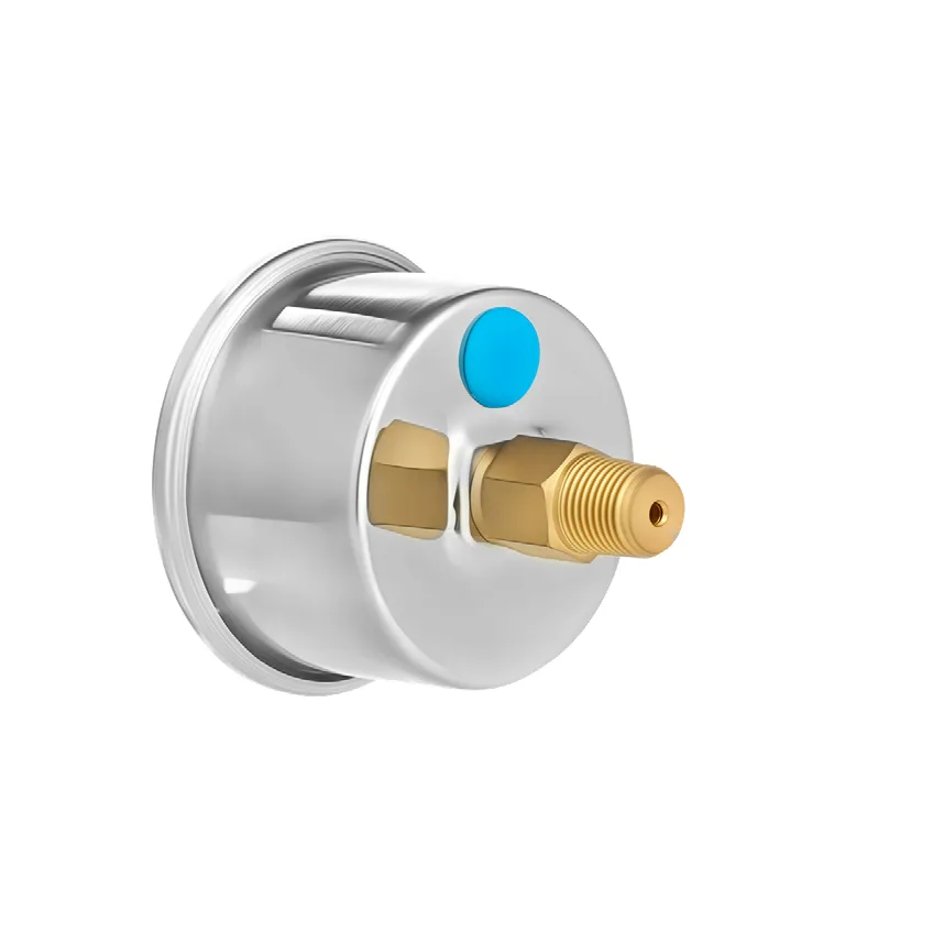 Stainless steel oil-filled pressure gauge with SS304 case and bezel and polycarbonate lens, suitable for panel or rear-mount installations and vibration damping.